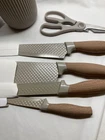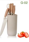 From Brand owner below: 【Professional High Quality Chef Knife Set】The Khaki 6-Piece Knife Set with superior high-carbon German stainless steel blades for precision is sharp and sturdy with a thin edge that keeps food from sticking to the knife’s edge, maintaining its ultra-sharp edge for precise cuts. Honed for long-lasting sharpness, the fine-edge blades boast precision cutting. Please stay away from Children because it is very sharp. 【Utility-driven Kitchen Knife Set】The 6-piece professional chef knife block set meets all the tools you need: 12" Kitchen Knife, 10" Chef's Knife, 9" Utility Knife, 8" Small Cleaver Meat Knife, 7.9" Kitchen Scissors, 9.3" Universal Knife Block. Multi-purpose Shear. Kitchen Knife Sets keep knives organized, neat, and space-saving. 【Ergonomic Design - Comfortable and Durable Handle】The appearance of this handle is made of wood grain design, each knife in the kitchen knife set features a fully forged bolster for sturdy, balanced cutting. The solid ergonomic PP wood handles enhanced Comfort Level and minimize wrist tension, give you a good sense of control over the blade and even after prolonged use, your palm and wrist will not fatigue. 【Nonstick & Rustproof Kitchen Knife Set】Unique Blade Design - Classic 3cr13 + Diamond Blade + Non Stick Coating, special new upgraded diamond pattern non stick coating kitchen knives are not only particularly but also strikingly, coating with nonstick coating can prevent food from sticking to knives and effectively prevent knives from rusting and very easy to clean.