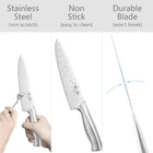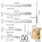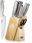 Kitchen Knives Set A well-made knives are perfect for everyday cooking which can add more relaxing time during cooking specially after a long day work. Made of high-end Stainless steel, it is more rust-proof and more durable than ordinary knives. Classic design and premium materials are most valuable professional knife set for you. Knives Care and Storage Tips 1、After the knife is used, please wash and dry before putting it in the knife holder. 2、Please don't use in a dishwasher. 3、Please don't sharpen them too often and always keep them in place and stay away from your children. What's you get 8 inch chef's knife*1 8 inch Slicing Knife*1 8 inch Bread Knife*1 5 inch Utility Knife*1 3.5 inch Paring Knife*1 Kitchen Sharpener*1 Pair Of All-Purpose Household Kitchen Scissor*1 Wooden Knife Holder*1 and Service and Easy-to-. If you have any questions DO NOT HESITATE to us first. 【PROFESSIONAL KNIFE SET】With a specialized set of kitchen knives-8"chef knife, 8" Slicing Knife, 8" Bread Knife, 5" Utility Knife, 3.5" Paring Knife, Kitchen Sharpener and Kitchen Shears, you will find out that cooking would be a enjoyable thing. A true cutlery organizer! 【QUALITY DESIGN】Knives are crafted with superior high carbon stainless steel blades for precision and accuracy. Corrosion-proof and . Curved design handle provides comfort and support. 【OAK WOODEN BLCOK】Elegant and high-Oak woodblock, easy to and Oak's fragrant wood can remove the smell of knives after use.hollow knife seat is easier to insert and remove, safe and sanitary. 【DURABLE EASY TO CLEAN】The integrated design of the blade and the shank is not easy to break, safe and durable. It ensures long lasting performance and easy to clean. You can save a lot of time on cleaning.