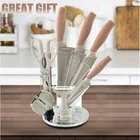 Kitchen Knife Set, Wiztoynia 8-Piece Khaki Super Sharp Knife Set with Acrylic Block for Small Kitchen, Anti-Rust Non-stick Stainless Steel Cooking Chef Knife Set with Shapener, Space Saving (Khaki) Utility-driven Kitchen Knife Set: 8-piece knife block set includes: 12" Kitchen Knife, 10" Chef Knife, 9" Japanese Knife, 9" Utility Knife, 7.9" Scissors, Peeler, Sharpener, Acrylic Block. Our knife set is very compact for limited counter space Nonstick Rustproof Coating: Superior high-carbon German stainless steel for maintaining its ultra-sharp edge for precise cuts. Unique diamond coating blade keeps food from sticking to the knife’s edge and ensures effortless cutting and cleaning Rotary Acrylic Stand: Our premium 360° rotating acrylic knife block is transparent so you can clearly see the knife you are going to use and easy pull out the knife you want, easy to storage and care, suitable for small kitchen and stylish Comfortable and Durable Handle: Ergonomic wood grain rubber handle feels great grip, anti-slip, and each knife in the kitchen knife set features a fully forged bolster, minimize wrist tension, for sturdy, balanced cutting Gift Ideas: Our beautiful kitchen knife set is ideal for both professional and amateur cooks, as a great gift for parents and friends, like Father's Day gift, Mother's Day gift, housewarming gifts, Thanksgiving gifts and Christmas gifts SHIPPING Domestic Buyers - We ship within 3 business days of payment, usually sooner - We offer FREE shipping on all orders! - We only ship to the lower 48 states, no APO/FPO addresses or PO Boxes allowed - We have confidence in our products, but if you are not fully satisfied please contact us within 30 days of purchase and you will get full refund. International buyers – please note: Import duties, taxes, and charges aren't included in the item price or postage cost. These charges are the buyer's responsibility. - Please check with your country's customs office to determine what these additional costs will be prior to bidding or buying. Return Policy - This product comes with 30-Days Money Back Guarantee. - If you receive an item and it doesn't work properly or you don't like it because of any reason at all, - we have a 100% refund/return policy. We will ship you a new item or refund your money for the full sale amount. - For all returned products, buyers MUST contact us for the returning address. * Order Cancellation Policy ** You can return a product for up to 30 days from the date you purchased it. 1. The seller reserves the right to cancel the special case only due to eBay cancellation fee. 2. The decision of seller is the final. 3. The seller will respond to the cancellation request within 2 business days. Please wait for the result of cancellation. 4. In case the cancellation is not completed by some reasons, the buyer can follow the options below to get the refund. 4.1 The buyer can reject the item when it arrives. 4.2 The buyer can send the item back to the seller within 30 days If the buyer receives item (USA Shipment ONLY). The seller will provide the FREE return label to the buyer when the buyer opens " Return Item" case on eBay by using the reason as "Change my mind" ONLY. 5. When buyer has placed the order. The order will be processed and completed by automatic warehouse system within 5 minutes. In case that buyer sends the cancellation request after 5 minutes of placing the order, the request will be rejected. **Sending direct message to cancel the order is not allowed for every case.* Return Policy For the return case - If buyer would like to return the items for refund or replacement, please CONTACT SELLER to receive the free return label from seller. The refund or replacement will be processed with the tracking number of return label which is provided by seller only. The other ways of return which are not approved by seller will not be processed for the refund or replacement.