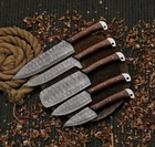 Brand: Damascus Type: CHEFS KNIFE KITCHEN SET Material: Wood, Damascus Steel Food Compatibility: Fruit, Meat, Salad, Universal, Vegetables Blade Edge: Straight gtin13: Does not apply Personalization Instructions: Please send custom details by eBay message. We can engrave your names on the cover, but of course with some little extra charges which is depended on the design/article/model. Personalize: Yes Set Includes: Bread Knife, Chef's Knife, Fillet & Larding Knives, Knife Set, Utility Knife, Vegetable Knife Features: Light Weight, Magnetic, Manual, Multi Functional, Reusable, Soft Grip, Soft Handle, With Blade Cover Blade Length: 9 in UPC: Does not apply Making Method: Oil Handle Material: Wood Number of Items in Set: 5 MPN: Dose Not Applied Color: Brown Custom Bundle: Yes Country/Region of Manufacture: United States