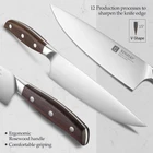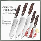 5pc Stainless Steel Knife Set 3.5 inches Paring Knife 5 inches Utility Knife 7 inches Santoku Knife 8 inches Carving Knife 8 inches Chef Knife Blade Material: 1.4116 Molybdenum Vanadium Steel of Germany ThyssenKrupp Group Handle Material: High-Quality Premium Red Sandalwood Core Hardness: 56 - 58 HRC Angle of the Edge: 15 Degree Per Side Surface Process: Polishing Processing, High-End Appearance Sharpness Level (The Level of Cutting Force): 6.0-8.0 N International Standards Packing: Gift Box Sharp, durable, anti-rust, and light energy. As professionals , we are investing a lot of resources to build a long-term relationship with factories and suppliers all around the world. We are providing nothing but the best products for decent prices and with great customer support. For any assistance, please feel free to contact us! Shipping Orders will be fulfilled by the best global warehouses right away and a tracking number is provided for every order. Returns Return accepted, Item must be returned unused and in original packaging and condition. You are welcome to review our Return Policy. Contact Us We are providing great customer support, feel free to contact us anytime!