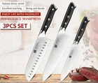 3pc Kitchen Knife Set Blade Material: German 1.4116 Steel Handle Material: Exquisite Ebony Wood Handle, Optical Lens Processing. Does not distort, not faded, does not shrink, and tasteless environmental protection. Hardness: 56 - 58 HRC Surface Craft: Forging and Mirror Polishing Process Sharpness Level (The Level of Cutting Force): 6.0-8.0 N International Standards Packing: Handmade Gift Box, Corrugated Cardboard (Shockproof, Pressure Defense, and Mouldproof) Sharp, durable, anti-rust, and light energy. As professionals , we are investing a lot of resources to build a long-term relationship with factories and suppliers all around the world. We are providing nothing but the best products for decent prices and with great customer support. For any assistance, please feel free to contact us! Shipping Orders will be fulfilled by the best global warehouses right away and a tracking number is provided for every order. Returns Return accepted, Item must be returned unused and in original packaging and condition. You are welcome to review our Return Policy. Contact Us We are providing great customer support, feel free to contact us anytime!
