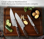 3pc Stainless Steel Knife Set 5 inches Utility Knife 7 inches Santoku Knife 8 inches Chef Knife Blade Material: 1.4116 Molybdenum Vanadium Steel of Germany ThyssenKrupp Group Handle Material: High-Quality Premium Red Sandalwood Core Hardness: 56 - 58 HRC Angle of the Edge: 15 Degree per Side Surface Process: Polishing Processing, High-End Appearance Sharpness Level (The Level of Cutting Force): 6.0-8.0 N International Standards Packing: Gift Box Sharp, durable, anti-rust, and light energy. As professionals , we are investing a lot of resources to build a long-term relationship with factories and suppliers all around the world. We are providing nothing but the best products for decent prices and with great customer support. For any assistance, please feel free to contact us! Shipping Orders will be fulfilled by the best global warehouses right away and a tracking number is provided for every order. Returns Return accepted, Item must be returned unused and in original packaging and condition. You are welcome to review our Return Policy. Contact Us We are providing great customer support, feel free to contact us anytime!