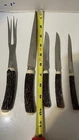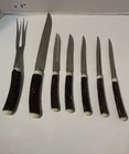 Knife Set Faux Wood Handle Retro Steak Knives W/serving Fork & Carving Knife.