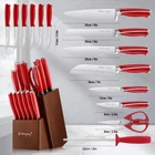 【Multipurpose Kitchen Knife Set】Knife set includes 8”Chef Knife, 8”Slicing Knife, 8”Santoku Knife, 8”Bread Knife, 5”Utility Knife, 3.5”Paring Knife,6 pieces of 4.5”Steak Knives, Knife Sharpener, Kitchen Shears and Hard Wood Knife Block. 【Comfortable Handle】Curved handle design fits your hand for a comfortable grip and reduces fatigue from long time cutting.The ergonomically designed ABS handles of kitchen knives set provides a secure, non-slip grip, making cutting more easy and safer. 【Premium Sharp】Ultra sharp, full tang, rust proof technology, with carefully hand-polishing and precise tempering technology, each set of kitchen knives taper-ground edge is hand polished to 16°, providing optimum sharpness and precision and effortlessly to cutting meat, vegetables, fruit, etc. 【Wooden Knife Block Set】Knife block available in walnut hardwood that is gentle on blade edges, protecting the sharpness and longevity of your knives and keeping your kitchen tidy.