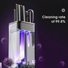 Smart Cleaning: The interior of the knife holder has a cleaning and drying function, waterproof and rust-proof. Wash the knife and put it back on the knife holder and press the button, the base will turn on breathing light and start working. The light goes off after five minutes, after fifteen minutes the cleaning job is over. The knives will become clean and dry. High-quality blade material: Forged with high-quality German stainless steel, the blade is added with molybdenum vanadium material, which makes the hardness and toughness more excellent. The surface of the blade has an anti-rust coating, which is not easy to rust and has a longer service life. Knife sets that meet various needs: Compared with complex and diverse knife sets, simple configurations can express clear functions. The set includes santoku knife, Utility knife, serrated bread knife, chef knife, and kitchen shears. This kitchen shears can be a bottle opener. Built-in sharpening rod keeps each knife sharp. The knife holder storage box is small and exquisite, convenient for placement and storage. The 5Cr15mov blade is durable, non-stick and anti-rust. Ergonomic handle design provides a comfortable grip Kitchen life is more intelligent: the set has a simple and elegant appearance whether it is outdoor picnic or as a holiday gift, it is a good choice. Make your kitchen life more intelligent, cleaner and high-end.