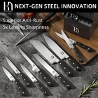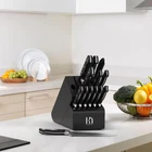 Knife Set, KnifeSaga 15 Pcs Kitchen Knife Block Set, Enduring Razor-Sharp Japanese High Carbon Stainless Steel Chef Knife Set with Block and Sharpener, Premium Black Knives Set for Kitchen Product Details Color: Black Brand: KnifeSaga MPN: Does not apply UPC: Does not apply EAN: Does not apply Color: Black Brand: KnifeSaga Blade Material: Innovative High Carbon Stainless Steel Blade Edge: Ultra Sharp Item dimensions L x W x H: 5 x 9.5 x 11 inches Color: Black Brand: KnifeSaga Blade Material: Innovative High Carbon Stainless Steel Blade Edge: Ultra Sharp Style: Modern Is Dishwasher Safe: No Handle Material: Stainless Steel, Acrylonitrile Butadiene Styrene Construction Type: Full-Tang Manufacturer: KnifeSaga Item Length: 5 Inches Item Weight: 11.4 pounds Date First Available: April 18, 2024 Ultimate Kitchen Knife Set Investment: Engineered for superior edge retention and durability, Knifesaga block knife sets maintain razor-sharp precision with minimal maintenance, ensuring professional-level performance that stands the test of time. Lifetime Service and Assurance: KnifeSaga knives offer superior hardness and edge retention, staying sharp and corrosion-resistant for a lifetime of reliable use. We're confident in the quality of our knife set with block. That's why we offer a 100-day hassle-free return policy and lifetime assurance, presenting not just a knife set, but a lifelong culinary partnership. Confidence in Every Cut: KnifeSaga has developed an innovative steel with optimized structural composition and carbon content. Each blade features an incredibly sharp 10 cutting edge, ensuring every slice is smooth, swift, and precise. Forged to Last: Advanced cryogenic tempering and precision heat treatment ensure superior hardness, flexibility, and corrosion resistance. Full-tang construction guarantees durability without breakage. Everyday Dish and Elaborate Meal: Comes with 8" chef knife, 8" bread knife, 6" boning knife, 7" santoku knife, 5" utility knife, 3.5" paring knife, 6pcs 4.5" steak knife set, a multi-purpose shear, a sharpening steel all housed in a solid wood block with non-slip bottom. Hand-wash recommended for premium-quality knives. A Precious Emotional Exchange: Knifesaga knife set represents a tribute to culinary skills and a love of food. Ideal gift for housewarmings, weddings, birthdays, Thanksgiving, and Christmas, it's a testament to your discerning taste and thoughtfulness for your beloved ones. Dancers at Your Fingertips: Ergonomically designed handles and a non-slip bolster provide exceptional comfort and control, assisting you in fully unleashing your culinary mastery.