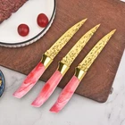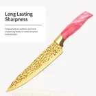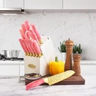 Knife Set, Non Stick Thick and Sharp Stainless Steel Kitchen Knives Set with Wood Block, 14 Pcs Cutlery Knives Block Set with Steak Knife, Bread Knife, Scissors, Chef Quality (Pink) Product Details Color: Pink Brand: Molrmyk MPN: Does not apply UPC: Does not apply EAN: Does not apply Color: Pink Brand: Molrmyk Blade Material: Stainless Steel Blade Edge: Serrated Style: Modern Color: Pink Brand: Molrmyk Blade Material: Stainless Steel Blade Edge: Serrated Style: Modern Is Dishwasher Safe: Yes Construction Type: Forged Package Dimensions: 14.09 x 10.87 x 5.59 inches Item Weight: 7.7 pounds Date First Available: September 8, 2023 A Full Knife Set - - This 14 Pieces knife set includes 1x 8" Santoku Knife 1x 8" Chef Knife 1x 8" Carving Knife 1x 8" Bread Knife 1x 3.5" Paring Knife 1x 5" Utility Knife 1x Kitchen Shears 6x Steak Knives 1x Knife Block. All the cooking knives you need in one pack. High-Quality Material to Cutting Items - - This stainless steel knife is made of stainless steel, doesnt contain any heavy metals and chemical elements. It will not react chemically with food, leave residue or emit an odor when used, allowing food to retain its original flavor and freshness for longer. Non Stick Forging & Hammering Texture Design - - Unique Forging & Hammering Texture Knife Blade makes this knife nonstick,and easy to maintain. Our tough stainless steel knives are not only sharp, also lightweight, comfortable to hold, and easy to grip. Easily cut anything (such as meat, bread, fruits, and vegetables) and let you enjoy the fun of cooking. Colors Optional & Ideal Gift - Our knife set will come with a stand that is beautiful and space-saving. Makes it easy for you to pick up the knife you need. Colors for you, Perfectly adapted to all kinds of kitchen styles. Also can be a great gift option for family and friends on birthdays, weddings, anniversaries, housewarming days, etc. Built-in Sharpener: Kitchen knife set with sharpener is amazing.It features a smart design with a built-in knife sharpener for added convenience. With this feature, you can effortlessly sharpen your knives without any hindrances, making this set a must-have for your kitchen.