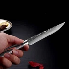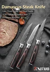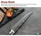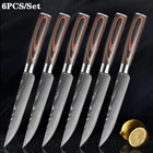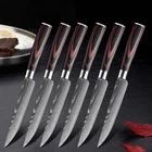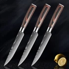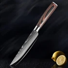 Steak Knife Set Damascus Pattern Stainless Steel Sharp Knife Beef Cleaver Multipurpose Restaurant Cutlery Table Knife Featur es : Name: Steak Knife Dinnerware Total length: 22.7cm Blade length: 11.4 cm Blade width: 2.1cm (The widest point) Blade thickness: 2mm Material: Stainless Steel Blade+ Color Wood Handle Tips : The blade is 7CR17 stainless steel, the surface of the laser Damascus pattern, very beautiful, good workmanship, razor sharp, keep your kitchen away from the blunt knife, and enjoy your kitchen life! Descript ion 1. Outstanding craftsmanship, cutting-edge technology, stunning design elements, and premium materials. The handle is made of color wood, looks so beautiful, feel proud of these steak knives when you host friends. 2. This blade allows you to cut cleanly through steak that has a thick or tough exterior and a softer or juicier interior. 3. The ergonomic handle offers Extreme Comfort and Control ensuring Maximum Performance while preparing your meals. Full-Tang enhances strength, durability, and control incredibly. 4. It is a good choice to be a gift. This steak knife set is perfect for as a thanksgiving gift, housewarming gift, father's day gift, anniversary gift, or retirement gift, etc. Package i nclu ding : 1/3/4/6pcs Steak Knives