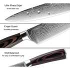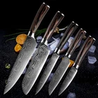 Descriptions: High-carbon stainless steel blade-It is manufactured from high-quality stainless steel that maintains its functionality for a long time. Stainless steel blade with high-carbon - The professional chef's knife is made from high-quality stainless steel. And to boost its sturdiness, the stee l contains 0.6%-0.75% carbon, making it two times as hard as other knives in its class as they contain just 0.3% carbon. Specifications: [Blade]: 7Cr17 Advanced stainless steel [Handle]: color wood handle steel head double [Features]: sharp and durable; environmental health; lightweight effort Standard: GB / T 1220-1992 Very sharp and can easily cut paper Features: Multi-functional knife - is classified and designed to be multipurpose knife for professional applications .It cuts,dices,slices,chops and also cuts meat off bones. Ergonomic color w ood handle - To make it more professional and minimize any fatigue, finger numbness or aches after holding it continuously for an extended time the knife's handle is made from color wood . This is material that originates from Africa and its known for its comfort, strength and stability. Ultra-sharp edge - Sharpness is key to achieving the best cuts and this is evident in the knife's blade which is quite sharp and will remain this way even after tough tasks such as cutting tough meat or removing flesh from bones. The sharpness is further boosted by use of the latest German engineering. For home ch efs & professional s - This Pro chef's knife has been the top choice of both home chefs and professionals alike. Designed to handle kitchen tasks both big and small, This durable knife's razor sharp and laser-tested blade effortlessly chops, minces, slices and dices. Knife Inclued: 1x 8" Chef knife 1x 5" Santoku knife 1x 7" Santoku knife 1x 5" Utility knife 1x 3.5" paring knife