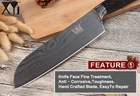 Hardness:58-60 HRC Handle material: colored wood handle Blade material: 7cr17 Stainless steel Blade pattern: Damascus' veins This top grade knife was full made by artificial work in our factory. It's functional and well balanced, good for practice and collections! This top grade knife's blade is strong and sharp through more procedures. it is high grade and durable. It is an all-purpose knife you must have. This is the one you want it to be the extension of your arm. If you want a knife, Then this is the one for everything. The ultimate cutting tool for everyday mincing dicing and chopping fruits, vegetables, meats, and fish. It is known as the chef's best friend. 1 * 8-inch Chef Knife 1 * 8-inch Slicing Knife 1 * 7-inch Santoku Knife 1 * 5-inch Utility Knife 1 * 3.5-inch Paring Knife KitchenWorlds is a one-stop shop for a high-quality Knives. In our store, you will find a variety of Knives for decent prices. As a professional business, we are investing a lot of resources to build a long-term relationship with factories and suppliers all around the world. We are providing nothing but the best products for decent prices and with a great customer support. For any assistance, please feel free to contact us! Shipping Orders will be fulfilled by the best global warehouses right away and a tracking number is provided for every order. Returns Return accepted, Item must be returned unused and in original packaging and condition. You are welcome to review our Return Policy. Contact Us We are providing a great customer support, feel free to contact us anytime!