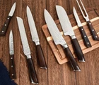 Introducing a fantastic knife set from CUT&IT that includes six steak knives 15-piece block. This modern and stylish kitchen knife set is perfect for any indoor cooking enthusiast. The knives are made of high-quality stainless steel and have a sleek silver/brown color. The set is more than twelve-pieces and comes with a one-year manufacturer warranty. The knives are firm and have a weight of 10 pounds. The handle is made of stainless steel and the set includes various types of knives like steak knives, fruit knives, and salad knives. This knife set is perfect for cutting through different foods like deep fry, meat, vegetables, and fruits. Get your hands on this complete kitchen knife set today!