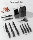 Innovative Utensil Holder: Say goodbye to kitchen clutter with our thoughtfully designed storage solutions.Our set includes innovative organizers, magnetic removable utensil holder, ensuring your kitchen tools remain neatly arranged and readily accessible. Premium Kitchen Utensils Set: Crafted from food-grade silicone and sturdy acacia wood, this 6-piece set offers reliable quality and heat resistance up to 464℉. Comprehensive Knife Collection: Includes essential knives like Bread Knife, Chef's Knife, Steak Knives, and more, complete with a Knife Block featuring a built-in Sharpener. High-Quality Knife Set: Forged with high-carbon stainless steel and treated with upgraded BO oxidized coating technology, ensuring rust-resistant, stain-free blades for long-lasting performance and dishwasher safe. Peace of Mind Warranty: Enjoy a hassle-free 30-day trial and lifetime warranty, making it perfect for both professional and amateur cooks, and ideal gift for various occasions.