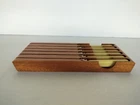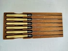 Lot of 2 -6 Piece Knife sets in wooden boxes (Total of 12 knives and 2 boxes). Leppington Sheffield, Made in England. Some wear, but overall good condition. See pictures. This is a vintage item that has been loved! There may some signs of wear and tear. We will outline any specific wear that we see. Otherwise, this piece is in good overall condition! Pictures are our best description. We try and take the best pictures we can, so that you can see clearly see the item and its condition. If you have any questions about this item, please don't hesitate to contact us and we will try and answer any questions.