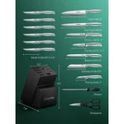 The 16PCS stainless knife set is forged continuously in one piece. It's a complete set that has every tool you could ever need to cut, chop, slice, dice when preparing your next meal with joy. This is the perfect knife set for anyone who loves to cook. All knives are impressed with their edge retention and corrosion resistance. You can cut effortlessly since it is comfortable in hand. Full Knife Set with Block: The 16-piece block set includes all the essential pieces you need in a knife set. 8" Chef Knife, 8" Carving Knife, 5.5" Bread Knife, 5.5" Santoku Knife, 5" Utility Knife, 4.5" steak knife * 6 pieces, 3.5" Paring Knife, 3" bird's Beak Paring Knife, Shears, and a Stainless Honing Steel—all stored in a classic countertop storage block. All Stainless Steel Kitchen Knives Construction: Forged continuously in one piece, forged steel instead of stamped so it is stronger and will last longer, staying sharp over repeated uses! All stainless steel for a sleek, modern appearance, and there's no water dripping down from the handle! High Grade Stainless Steel Blade: The blades are made of high-quality stainless steel (X50CrMo15), which is extremely durable and sharp, effortlessly cutting, chopping, slicing and dicing through a variety of ingredients. Sharp Essentials with Useful Extras: The Kitchen Knife sets are made of X50CrMo15 high-carbon stainless steel to make them durable and long-lasting. Signature 16-Degree taper grind edge for optimum sharpness, precise cutting, and easy sharpening. Lightweight and Comfortable Knives Set: Curved and the tapered handle is very comfortable to hold. Soft, comfortable handles ensure a solid and safe grip, the hollow handle design won't feel too heavy.