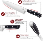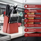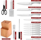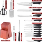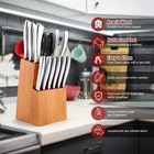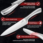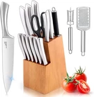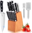 Knife Set for Kitchen with Block,16-Piece High Carbon Stainless Steel Knife Sets Knife Set for Kitchen with Block, E-far 16-Piece High Carbon Stainless Steel Knife Sets Includes Chef Utility Paring Steak Serrated Bread Knife & Sharpener Kitchen Shears, Full Tang & Forged Blades. About this item SUPER VAUE SET - Includes 8-inch Chef Knife, 8-inch Carving Knife, 8-inch Serrated Bread Knife, 4.5-inch Utility Knife, 3.5-inch Paring Knife, 4.5-inch Steak Knife x 6, Sharpening Rod, Kitchen Shears, Peeler, Cheese Grater and Storage Block, All-in-one knife set covers all the essentials pro chefs or busy home cooks will need HIGH CARBON STAINLRSS STEEL - All knives’ blade is forged from premium quality high-carbon stainless steel, Creating a stronger, harder blade to resist stains, rust and pitting, Highly polished solid blades with razor-sharp edge for more precise cuts and trimming without tearing foods, Full-tang construction provides ultimate strength and durability ERGONOMIC DESIGN - Thick angled bolster gives better balance and protects the hand from slipping onto the blade, Ergonomically shaped stainless steel handle fits comfortably in the hand and glides easily in both chopping and slicing motion, Proper weight and size will never tire your hands, Single piece design with no gaps to trap food for healthier cooking EASY TO STORE & CARE - Walnut wood block designed with proper-sized slots makes a safer place to store your slicers also keeps them sharp, Easily accessible when needed and match perfectly with any kitchen decor, Declutter your kitchen counter while make it look gorgeous, Clean and dry them before storing in the block to protect the sharpness and glossiness. MULTI-FUNCTIONAL KNIVES SET - This versatile knife set is suitable for kitchen, home, restaurant, outdoors on a camping trip or picnic, Great for chopping, slicing, cutting, dicing, deboning, and carving, Easy to slice tomatoes, chop onions, cut up carrots, bone a chicken and create thin ribbons of basil, Perfect gift for anniversaries, birthdays, Father’s Day, housewarming, Christmas. Payment ●Payment must be received within 3 business days of auction closing. ●Please Note: Import duties, taxes and chargers are not included in the item price or shipping charges. These charges are the buyer's responsibility. Shipping ●Items will be shipped within 3 days after the cleared payment. All items will be checked carefully and packages in good condition. ●We will ship to ebay's address only. Please make sure your address on ebay is the same with your shipping address before you pay. ●Shipping and Handling will be determined based upon the ship to address ●If you didn't receive your package, this time schedule, please do not hesitate to contact us. Within 24 hours we will try to update you with the latest tracking details of the shipment. Return and Feedback ●We sincerely hope that you can leave us a positive feedback. If, for any reason you are not satisfied with your purchase, please contact us through "Ask Seller Questions" before leaving neutral or negative feedback ●If you are not satisfied about your received item, please return it within 30 days for a money back. ●We will accept any return and give a full refund (without shipping cost) on any item. The item must be returned to us in original condition and the buyer need to pay return shipping cost.