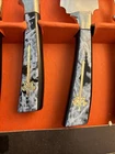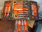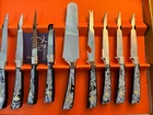 This vintage set of 17 knives, branded as Lifetime, is a must-have for any kitchen. The set includes many different types of knives with various blade edges, making it perfect for a wide range of uses. The multicolor design adds a touch of elegance to any dining table. The set is ideal for those who appreciate the finer things in life and enjoy collecting unique items. It comes in a vintage box( which has some wear), making it a great addition to any collection. The knives are perfect for everyday use or for special occasions. Get your hands on this one-of-a-kind set today! Please ask questions before you purchase. Thanks!