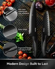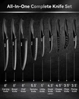 Knife Set with Block, 17 Pieces Kitchen Knife Set with Built in Knife Sharpener Block, German Stainless Steel Knife Block Set, Elegant Black 🔪 17 PIECE KNIFE SET - 17-piece professional set includes 8” Carving knife, 8” Bread knife, 8" Chef knife," Santoku knife, 5" Utility knife, "Steak knives(x6), " Cheese knife,"Pizze knife,"Paring knife, Shears, Knife wooden block. 🔪PROFESSIONAL QUALITY STAINLESS STEEL - Knives are forgedorged with german high carbon stainless steel manually polished to keep the sharp edge, no rust, no pits. Sharper cutting face with more acute 16-degree angles. Cuts iron like mud! 🔪MODERN STYLING WOONDEM BLOCK - Modern, stylish woonden block design with stainless steel accents fits conveniently on your countertop and complements any kitchen decor. 🔪EXCLUSIVE BUILT-IN SHARPENER - This kitchen knives set comes with a built-in sharpener which is a handy bonus. Saves you the hassle of sharpening blades on a sharpening steel. 🔪TWO S satisfaction - We are fully committed to providing users with quality products and services. Our customer support team will respond within 24-48 Hours! 100% satisfactory resolution in case of any issues. We promise you a or satisfaction. Happy Christmas ! Thank you for your long-term support and companionship, and I wish you a happy Christmas.