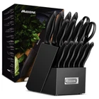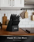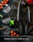 Knife Set with Block, 17 Pieces Kitchen Knife Set with Built in Knife Sharpener Block, German Stainless Steel Knife Block Set, Elegant Black Description and features 🔪17 PIECE KNIFE SET - 17-piece professional set includes 8” Carving knife, 8” Bread knife, 8" Chef knife,5.5" Santoku knife, 5" Utility knife, 4.5"Steak knives(x6), 4.5" Cheese knife,4.5"Pizze knife,3.5"Paring knife, Shears, Knife wooden block. 🔪PROFESSIONAL QUALITY STAINLESS STEEL - Knives are forgedorged with german high carbon stainless steel manually polished to keep the sharp edge, no rust, no pits. Sharper cutting face with more acute 16-degree angles. Cuts iron mud! 🔪MODERN STYLING WOONDEM BLOCK - Modern, stylish woonden block design with stainless steel accents fits conveniently on your countertop and complements any kitchen decor. 🔪EXCLUSIVE BUILT-IN SHARPENER - This kitchen knives set comes with a built-in sharpener which is a handy bonus. Saves you the hassle of sharpening blades on a sharpening steel. 🔪PROMISE - We are fully committed to providing users with quality products and services. Our customer support team will respond within 24-48 Hours! 100% satisfactory resolution in case of any issues. We promise you a replacement or refund. Elevate Your Home Cooking Experience Tired of making do with one or two kitchen knives? ‘s knife set has 5 different knives that come in different shaped blades and sizes! Transform and elevate your culinary creations at home with the right kitchen tools by your side. ‘s knife set has everything a home chef needs: chop up vegetables, meat, or fish with this 7-piece knife set. Treat yourself with premium quality kitchen essentials that will always make the perfect cut. Return Policy ⦿ All our products come with a 30-Day Return Policy. If you would like to return your item and you are within 30 days of the purchase, and it is still in its original condition, you can return the item by contacting us through eBay messaging. ⦿ If you are not 100% satisfied, please let us know the Detailed Problem,We will give you a 100% satisfactory solution ⦿ If you received an incorrect, damaged, defective, or item not as described, contact us for a partial/full refund or replacement on our cost. ⦿ Free Shipping and Free Return 30-Days Money Back Guarantee. ☎ For all returned products, buyers MUST contact us for the returning address. Shipping ⦿ We do not ship to a different address. we will ship to the address you provide on the ebay only. Please check your address before purchase. ⦿ It should take 2-4 business days for the product to reach your destination. ⦿ If the product doesn't reach your destination within the time limit, please give it an additional 1-2 business days in case of postal delays and/or possible technical issues. ⦿ We use a selection of shipping services such as UPS, FedEx, USPS etc. ⦿ We ship only to the 48 contiguous states of America. We do not ship to Hawaii, Alaska, US Protectorates, APO/FPO addresses. Local pickups are not offered. ☎ If it takes any longer than that, please do not hesitate to contact us to resolve the issues. Contact us ☎ Please contact us via eBay message. And your message will be replied within 1 business days. For any queries, please feel free to contact us, we will get back to you as quickly as possible. Customer 100% satisfaction is our first priority and goal. We are always working hard for maintain high standards of excellence and resolve your problem in best way. So your POSITIVE FEEDBACK is very important. If you have any problem of the item, please feel free to let us know before leaving your feedback. We will try our best to solve your problem. About us We are here to give you quality products, competitive pricing and amazing service in order to make sure you get the best deal online, Thank you for your business and the opportunity to serve you.
