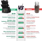 Blade Material Stainless Steel Blade Edge Serrated, Plain Item dimensions L x W x H 7.69 x 6.6 x 12.5 inches About this item Ultimate Precision and Durability: The imarku premium sharp knife set boasts ultra-sharp blades made from Japanese stainless steel, ensuring effortless cutting and long-lasting use. With an ergonomic design and built-in sharpener, our knife set is ideal for both home cooks and professional chefs Comfortable and Safe to Use: Featuring an anti-slip handle design to ensure a comfortable, balanced grip that prevents accidental slips, imarku knives are perfect for everyday use. With a curved design that reduces hand strain and fatigue, our knives are both practical and safe to use All-in-One Knife Set: Get more done in the kitchen with our 14-piece knife set, including a chef's knife, serrated bread knife, slicing knife, Santoku knife, paring knife, utility knife, six steak knives, kitchen shears, and hardwood knife block with a built-in sharpener. Each knife is neatly organized and ready to use Easy to Clean and Maintain: Cleanup is a breeze with our dishwasher-safe knife set. To maintain their sharpness, we recommend a quick rinse and gentle hand washing. The knife block can be easily wiped down to keep your storage area neat and organized Blade Material Stainless Steel Blade Edge Serrated, Plain Style Black Knife Set Item Weight 7.45 Pounds Is Dishwasher Safe Yes Handle Material Food Contact PP Construction Type Forged UPC 850065367415 Manufacturer imarku