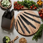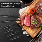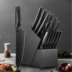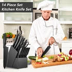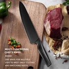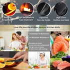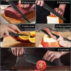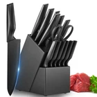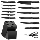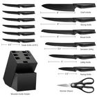 【Comprehensive knife set】: This 13-pieces stainless steel knives, including a chef knife, a slicer knife, a bread knife, a santoku knife, a utility knife, a paring knife, a kitchen shear and six steak knives. 【Premium material】: Each knife is made of high-quality stainless steel to stay sharp and durable, providing you with a reliable cooking companion. 【Hygienic and convenient】: Knives are covered with black non-stick paint coating, which is easy to clean, ensuring the hygiene and safety of food ingredients. 【Functional wooden block】: A functional wooden block not only organizes knives but also provides additional workspace and adds a pop of color to your kitchen. 【Professional design】: Each knife is well designed for cutting all kinds of ingredients to ensure a sharp edge,which can meet your cooking needs.Our product is ergonomically designed, it's easy to hold.