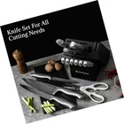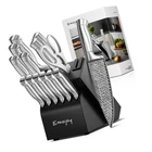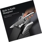 Knife Set,Emojoy 15 Pieces Kitchen Knife Set with block, Knife Block Set with Built-in Sharpener,High Carbon Stainless Steel Sharp Chef Knife Set with Hollow Handle Product Details Color: Gray Brand: Emojoy MPN: E24.KCKS55 UPC: Does not apply EAN: Does not apply Color: Gray Brand: Emojoy Blade Material: High Carbon Stainless Steel Blade Edge: Serrated Style: Modern Color: Gray Brand: Emojoy Blade Material: High Carbon Stainless Steel Blade Edge: Serrated Style: Modern Is Dishwasher Safe: Yes Handle Material: Stainless Steel Construction Type: Forged Manufacturer: Emojoy Included Components: 8”Chef Knife, 8”Slicing Knife, 8”Santoku Knife, 8”Bread Knife, 5”Utility Knife, 3.5”Paring Knife, Kitchen Scissors, Knife Sharpener and 6 pieces of 4.5”Steak Knives Package Dimensions: 14.76 x 9.96 x 7.17 inches Item Weight: 8.51 pounds Country of Origin: China Item model number: E24.KCKS55 Date First Available: July 17, 2024 15 Pieces Knife Set Professional kitchen knife set includes 8Chef Knife, 8Slicing Knife, 7Santoku Knife, 8Bread Knife, 5.5Utility Knife, 3.5Paring Knife, 6 pieces of 4.5Steak Knives, Knife Sharpener, all-purpose household Shears, and a Wooden Block for convenient storage. Sharp Kitchen Knife Set with Block Each forged kitchen knife is made with high carbon stainless steel blades to ensure that the knives maintain an ultra-sharp edge to cutting. Exceedingly sharp conical ground edge, the knives set for kitchen has hand-sharpened to a 16-degree angle, are long-lasting and easy to maintain. Comfortable Stainless Steel HandleThe handle is ergonomically designed to fits any hand shape, holding this knife, you can feel the smoothness and comfort that you have never felt before!The knife sets for kitchen with block has full tang handle design makes it power balanced and flexing comfortably, ensuring that finger cramps and pain are minimized, especially during prolonged use. Premium Knife Block Set Ultra sharp, full tang, rust resistant technology. The built-in knife sharpener, you can sharpen it at any time and keep the knives always sharpest. The knife block is designed at an angle for safe and convenient storage in the knife holder and easy access to keep your kitchen tidy. Lifetime Warranty Each set of knives are backed by excellent quality and undergo strict quality inspection, emojoy knife set provide a lifetime warranty for every customer, please feel free to purchase.