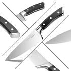 Premium Kitchen Knife Block Set: 8-inch Chef's Knife, 7-inch Santoku Knife, 8-inch Serrated Bread Knife, 6-inch Utility Knife, 4-inch Paring Knife, 8-inch Sharpener Steel, 1 PC stainless steel Shears, and a 1 PC sleek Wooden Block. Ultra Sharp Knife Set: Each Knife adopted imported German stainless steel X45CrMOV blades and hand-sharpened to 15 degrees per side and expertly heat treated, to maximum sharpness and edge retention, all of these ensure this Kitchen Knife Set has razor-sharp performance. Full-Tang Ergonomic Handle: Precision forged Full Tang with triple riveted ABS handle with a Fully forged Bolster, gives an excellent balance weight, which minimizes fatigue while maximizing cutting precision. Sleek Design and Easy Storage: A sleek, modern design fits in seamlessly among your other kitchen tools. The wooden block with built-in knife sharpener reduces clutter from the counter and protects your knives for years to come. Care: To maintain the sharpness and glossiness of the knives set, the knives are Hand Wash Only. Hand washing the chef knife set with a soapy cloth under running water after every use, keep it dry and safe.