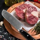 Elegant Life Knife Set, Professional Kitchen Knife Set with Wooden Box, Chef Knife Set, Stainless Steel Finish, Includes Chef Knife, Bread Knife, Carving Knife, Utility Knife and Paring Knife (5 Pieces) Most Valuable 5 Piece-Package include Chef Knife, Slicer Knife, Santoku Knife and Paring Knife. A classic set for the everyday home cook. Cut and chop meat, vegetables, fruits, and cheese for your next stunning meal with ease. Whether cooking is your passion or hobby, we think you will love this set! ERGONOMIC AND TRIPLE RIVETED HANDLE-Each kitchen knife is forged from a single piece of high carbon Japan stainless steel. The ergonomic handle provides a solid grip while the shape of the bolster delivers optimal weight and balance. Non-slip ABS handle is able to maintain it’s friction even then the handle is wet, make the cutting more safe and effortless. Each handle is triple riveted for superior Japanese strength and unmatchable kitchenware durability. SUPERIOR SHARP & BEAUTIFUL PATTERN - The knife blade is forged with hand-polished edges and precise tempering. The edges of the knife are carefully hand sharpened to 16-18° per side, maintaining the perfect balance between achieving ultra thin slices and maximum resilience. Beautiful Damascus pattern resists stains, corrosion and discoloration. And Damascus steel forms extremely dense fine metal grains in folding forging, which sharpens a particularly fine zigzag super sharp edge on the cutting HIGH-END GIFT CHOICE - Our Damascus knives have a unique and very beautiful natural cast texture, the knives' handles are noble and elegant, and with a beautiful gift box, it is the best gift for parents, lovers, friends and Christmas, Wedding, Birthday. Excellent value for money, worth having. . Product description Elegant Life is a brand that has been devoting into design and manufacturing the high-end kitchenware with more than 11 years of proficiency and passion. Our product has been sold to many countries of different regions such as Finland, Italy, United Kingdom, france, Germany, Japan, Singapore, Australia, USA, Canada etc. Proven manufacturing process makes every edge perfectly polished finished with a shine, this utensil will provide a dinner party set up with that extra elegant factor to show your expertise in entertaining guests. 5 Piece Professional Knife Set with woodbox High-Carbon stainless steel blades with Ultra-Sharp. Extraordinary One-Piece Design, safe and durable. Ergonomically designed stainless steel handle with Non-slip grip provides comfort and support. Please DON'T use in a dishwasher, HAND WASH is highly recommended to prevent rust before drying with a napkin! Please be careful when using and storing it! Be sure to use it correctly, always keep them in place and STAY AWAY from your children. Brand: Elegant Life ASIN: B07ZKDJJDG