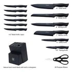 KITCHEN KNIFE SET - This high quality kitchen knife set is stain and rust resistant and can be used with high frequency or after long periods of inactivity to fully utilize the life of the knives. ALL-IN-KITCHEN SET - 15-piece knife set includes. 8" chef's knife, 8" slicing knife, 7" Santoku knife, 8" serrated bread knife, 5" utility knife, 3.5" paring knife, 6 4.5" serrated steak knives, 1 kitchen shear and hard wood knife block with built-in knife sharpener. SHARP KNIFE SET - Each of knives is carefully tuned to be the sharpest it can be and wears a built-in sharpener. DISHWASHER SAFE - The knife set can be washed in the dishwasher, easy and quick to operate, and dry the knife set after cleaning for easy storage, not taking up space. CRAFTSMANSHIP - Non-Stick and Rust Resistant - With a black coating that prevents oxidation of the steel, the kitchen knife set will last a long time and remain non-stick and rust resistant. The ergonomically designed handle provides a comfortable grip and the handle will no longer loosen or fall off.