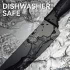 KITCHEN KNIFE SET - This high quality kitchen knife set is stain and rust resistant and can be used with high frequency or after long periods of inactivity to fully utilize the life of the knives. ALL-IN-ONE KITCHEN SET - 15-piece knife set includes. 8" chef's knife, 8" slicing knife, 7" Santoku knife, 8" serrated bread knife, 5" utility knife, 3.5" paring knife, 6 4.5" serrated steak knives, 1 kitchen shear and hard wood knife block with built-in knife sharpener. SHARP KNIFE SET - Each of HUNTER.DUAL knives is carefully tuned to be the sharpest it can be and wears a built-in sharpener. DISHWASHER SAFE - The knife set can be washed in the dishwasher, easy and quick to operate, and dry the knife set after cleaning for easy storage, not taking up space. CRAFTSMANSHIP - Non-Stick and Rust Resistant - With a black coating that prevents oxidation of the steel, the kitchen knife set will last a long time and remain non-stick and rust resistant. The ergonomically designed handle provides a comfortable grip and the handle will no longer loosen or fall off.