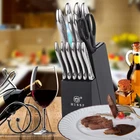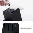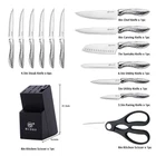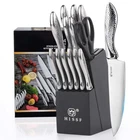 This 14 pieces Kitchen knife set contain : 8" chef knife, 8" carving knife, 7" santoku knife, 6.5" serrated utility knife, 5" utility knife, 3.5" paring knife, 6pcs 4.5" serrated steak knife, kitchen shears, and knife block with built-in sharpener. High Quality : This kitchen knife set is made of high carbon stainless steel with mirror polished stainless steel handle.The knife blade is Crafted in Exclusive taper grind edge technology provides optimum sharpness for precise cutting and is easy to re-sharpen. Ergonomic and Beautiful Handle Design: The ergonomic steel hollow handles ,provide balance and nice weight, comfortable to hold and use. Unique hammered pattern design brings you the cooking joy. High Solid And Space-Saving Wood Knife Block: All knives safely in the high Solid Wood knife block with built-in sharpener for space efficient storage. Value knife sets: 14 pieces knife set includes: 8" chef knife, 8" carving knife, 7" santoku knife, 6.5" serrated utility knife, 5" utility knife, 3.5" paring knife, 6pcs 4.5" serrated steak knife, kitchen shears, and knife block with built-in sharpener. Perfect for your daily kitchen tasks of chopping, slicing, dicing and mincing of all kinds of meats, vegetables, fruits and breads as well. Easy Care and Clean: Please don’t wash in dishwasher, to protect the sharpness and glossiness of the knives. Wipe dry after cleaning. This knife set is perfect as a gift for graduates, newlyweds, or anyone setting up a first-time kitchen.