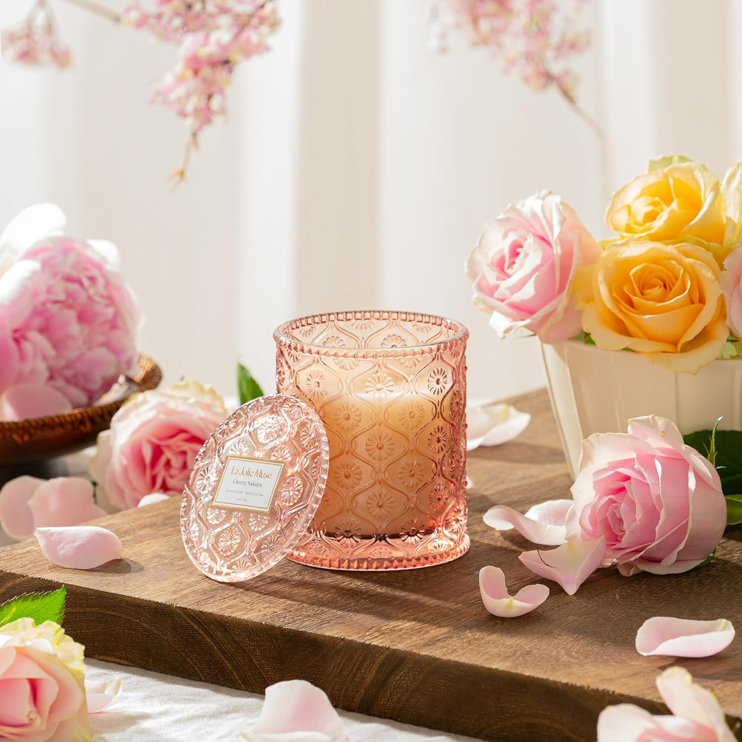 LA JOLIE MUSE Cherry Sakura Candle, Valentines Day Candles Gifts for Women, Natural Soy Floral Pink Candles for Home Scented 6 Oz 40 Hours Burn