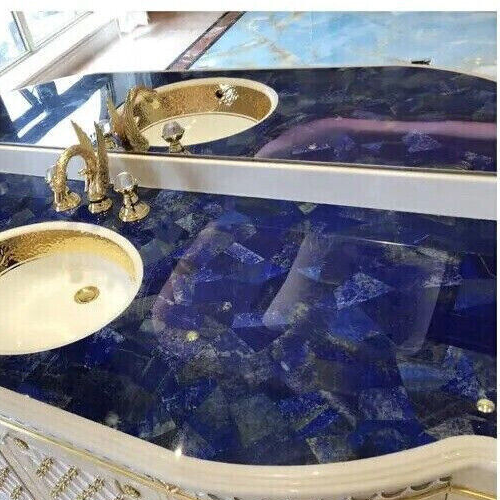 Welcome To Stone-Craft- Creations Shop Description Very unique Art by Indian Artist ,Coffee/Side Table top Used Material: Natural Lapis Stones Arts Size: According to Size Variation Color: Blue Shape: Rectangle Pattern: Handmade Room: Bedroom, Dining Room, Hallway, Home Office/Study, Kid’s Bedroom, Kitchen, Laundry/Utility Room, Living Room,Patio, Playroom Packaging: Wood & Foam Export Packing Shipping: Air Can Be customize ,Please Message us your desired Size 1. It can be used as a Dining Table, Guest table, coffee table, center table top in show room as well as a gift for your loved ones. 2. The table top is made in Agra India & fully handmade. 3. The top will be delivered by FedEx or DHL free of cost door to door. 4. If there is any local tax,custom duties or Vat will be paid by the buyer at the destination. 5. The parcel is dispatch with proper packing & fully insured covering all kind of risk. 6. To maintain the table top is simple soap & water & dry cotton cloth. 7. If You Are Looking Something Customize, Let Us Know We Will Make For You As Per Your Design, Size & Shape. 8.Table top does not includes any wooden, marble stand or base if you like to buy marble or wooden base or stand that will be charged extra. Marble Agate Table Tops We are Manufacturer & Exporter of marble agate table tops. These marble agate table tops have different shapes like Round Table top, Octagonal Table Tops, Rectangle / Dining table tops, Square Table tops, Chess Table tops, Taj Mahal Table tops, Custom Designs Table tops also make marble Table top Base and Stand. Then we can be used as dining tables, coffee tables, Center tables, conference tables, chess boards, reading tables, bar tables , Garden table, side and corner tables or any other use as per the indoor and outdoor decor. They can also be placed outdoors in the garden, as marble is stain free, offers great resistance to the forces of nature, and can withstand heavy temperatures. We also meet customized requirement and offer our marble table tops at industry leading prices. About Agate Stone- Agate is a rock consisting primarily of cryptocrystalline silica, chiefly chalcedony, alternating with microgranular quartz. It is characterized by its fineness of grain and variety of color. Although agates may be found in various kinds of host rock, they are classically associated with volcanic rocks and can be common in certain metamorphic rocks. Ancient use of agate stone Agate is one of the most common materials used in the art of hardstone carving, and has been recovered at a number of ancient sites, indicating its widespread use in the ancient world; for example, archaeological recovery at the Knossos site on Crete illustrates its role in Bronze Age Minoan culture Types Of Agate 1. Fortification Agate This is the most common and distinctive type of agate. In these agates, bands crystallized into concentric layers that more or less follow the shape of the cavity. The banding resembles an aerial view of a fort 2. Water-Line Agate (also called water-level or onyx) During its formation, silica-rich solution either entered the cavity slowly laying one band at a time, excess water drained out leaving a small amount of silica to settle out into separate bands, or the vesicle filled under low pressure. In any case, the silica crystallization in water-level agates is controlled by gravity in one orientation, forming a stack up of parallel bands. 3. Shadow Agate Some agates exhibit a shadow effect in which there is what appears to be movement across the agate layers when the specimen is rocked back and forth (or your orientation to the specimen moves). This optical effect only occurs when there are alternating translucent and opaque bands. It is caused when light goes into the agate, but is not reflected out. 4. Tube Agate Tube Agate During the formation of some agates, parallel projections of tiny hair-thin mineral rods grow first within the silica gel, around which later the chalcedony agate micro-crystals form. In some cases the inclusions remain, but sometimes they weather away leaving hollow tubes that subsequently fill in with silica. 5. Eye Agates This mysterious agate characteristic is believed to be formed when most of the silica gel drains from the cavity, leaving only a droplet that “beads up” on the inside wall of the cavity. This droplet crystallizes into solid chalcedony “eyes”. In some cases, crystal growth will continue from this droplet in a manner similar to the formation of stalactites in caves. Later, the pocket fills in with the usual deposition of chalcedony microcrystals. 6. Plume Agate These agates initially had formations on their outside layer that formed prior to the deposition of chalcedony bands. They are filament growths of mineral inclusions that resemble ferns or feathers. 7. Geode Agate Geode Agate In some cases the supply of silica-rich water runs out before the entire cavity fills in. When there is a hollow center within a crystalline outer fill, the specimen is considered a geode. Not all geodes have agate banding, but many do. Also, the inner layers can form into several different types of silica mineral crystals and may even have other types of mineral crystals. 8. Moss Agate Moss Agate Moss agates have clusters of mineral inclusions that resemble plants, trees, or landscapes. Most moss agate inclusions are comprised of iron or manganese oxide. In some cases, the inclusions inhibit chalcedony banding allowing the mineral clusters free reign to grow within the silica gel. 9. Seam Agate Seam agates for in cracks within host rock, rather than in rounder pockets. The bands form in parallel rows that follow and fill in the crack or seam.