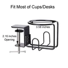 Package includes: 1 x clamp cup holder Fit Most Cups: Cup holder measures 3.58 inches in diameter, wide enough to hold most cups, cans, bottles, tumblers, mugs with handle, etc. Strong Clip: Thick metal clamp with 2.16 inches opening, will not move after it attaches to desk, even 50oz bottle on. Anti-Rust/Anti-Scratch: The drink holder is made of thick 304 stainless steel material with plating finish, and the metal clamp with thick baking finish, will not rust, can last for years. Also the clamp with non-slip mat will not scratch the surface of desk. Two Mounting Modes: Vertical mounting mode for desktop; Horizontal mounting mode for desk leg. Choose the mode when you install. Anti-Spill: Put your drinks on the side of your desk, no worry about spilling drinks when you work or play. it also frees up your desk space and keeps desk clean and neat.