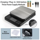 [ Large Size, HOLD Function ] The size of weighing platform : 7.2x7.2 inches, more convenient to weigh large-sized items. With the HOLD function, it can be measured even if the size exceeds the weighing pan. [ 0.1g high precision and powerful function ] The built-in high quality sensor provides 0.1g accuracy and 0.5g~5kg measurement range. Powerful functions: % percentage function, tare function, hold function, unit conversion, counting function, automatic shutdown, calibration, etc. [ % percentage function, baker's helper ] No need to calculate the gram weight of the ingredients, use the % function to operate according to the ratio, which greatly improves the efficiency. [ Rechargeable or plugged in to use ] It can be plugged in with a USB cable for continuous use, and the built-in lithium battery can be recharged, or it can be powered by 2 AAA batteries. Use it at any time without worrying about running out of power. [ High Quality, Multiple Accessories ] The full viewing angle LCD display can be clearly read from all angles. The weighing pan made of stainless steel is durable and easy to clean. Rich accessories: equipped with tray containers and a built-in 100g weight for calibration at any time. Package contents: Scale x 1, 100g Weight x 1, Large transparent box x 1, USB cable x 1, AAA Battery x 2, Instruction manual x 1. Product Description Add to Cart Add to Cart Add to Cart Add to Cart Customer Reviews 4.6 out of 5 stars 300 4.4 out of 5 stars 655 4.3 out of 5 stars 148 4.5 out of 5 stars 175 Price $33.88 $ 33 . 88 $26.88 $ 26 . 88 $26.88 $ 26 . 88 $15.88 $ 15 . 88 Resolution 0.001oz/0.1g 0.01oz/0.1g 0.001oz&0.1oz 0.01oz/0.1g Max weighing 11lb 11lb 1.1lb&11lb 6.6 lb Waterproof level Ordinary anti-drip and splash IPX5 Washable Ordinary anti-drip and splash Ordinary anti-drip and splash Power supply Lithium battery & 2 x AAA Battery Lithium battery & 3 x AAA Battery 3 x AAA Battery Lithium battery & 2 x AAA Battery Size 9.8x7.3x1.5 inches 8.27x6.3x1.18 inches 7.6×5.4×0.8 inches 5.5×4×0.7 inches Specification 1. Mode l: B613 2. Measuring range : 0.5g-5kg/11lb 3. Resolution/increment : 0.1g/0.001oz 4. Unit conversion : oz\lb\lb:oz\g\kg\ml\milk ml l'oz 5. Multiple functions : Tare function , % function , Hold function , Unit conversion , Counting function , Auto-off , Calibration function 6. Size : Weighing platform : 7.2x7.2 inches; Display screen : 2.7x1.3 inches; Total : 9.8x7.3x1.5 inches; 7. Power supply : AAA battery x 2/lithium battery (TYPE-C rechargeable) 8. Package contents : Scale x 1 100g weight (installed on the back of the scale) x 1 Large transparent box x 1 USB cable x 1,AAA battery x 2 Instruction manual x 1 Extra-large Platform More convenient to weigh large-sized items. Not block the screen and buttons, easy to handle. Notes 1. The blue protective film on the weighing platform can be torn off before use. 2. The standby time of Auto-off can be set or canceled, Please refer to the manual for specific operations. 3. The minimum weighing starts from 0.5g, and the measuring range is 0.5g~5kg. 4. When cleaning, please wipe it with a wet rag. Do not rinse the scale under the water. High Quality & Easy to Read Full viewing angle and super large backlit display, easy to read from all angles, and no need to worry about not being able to see the screen clearly in dark places. Stainless steel platform is durable and easy to clean. 100g weight attached to the back, ready for calibration at any time. Handy Percent Function Using the % function, you don't need to calculate the gram weight of the ingredients, which greatly improves the efficiency. It is a good assistant for bakers and baking lovers. Rechargeable/AAA battery&Auto-off USB rechargeable: Built-in lithium battery, rechargeable or plugged in for use. 2 x AAA Battery: If you forget to charge, you can use ordinary batteries. Auto-off: After 3 minutes of stop operation, it will automatically shut down ( can be set or canceled ). More accessories Large container box x 1 100g weight (installed on the back of the scale) x 1 Hold Function Click the "HOLD" button, the screen will display "H-ON". If a large item blocks the screen, it cannot be read. Take away the item and still keep the weighing result.