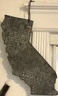 Heavy 2.5lb laser etched black slate cutout silhouette of the state of California with major cities engraved as the design. Can be use as a decorative wall art. Seeing similar items for sale as a cheeseboard or serving tray. Fun item for new Californian or a California native. Or unique cheeseboard collector. Measures about 13” long.