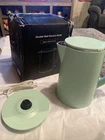 Light green double wall electric kettle auto shut off 1.5 L large capacity. Does have a small chip on the side please see pics but honestly it doesn’t hurt anything just wanted to make sure you see it…. Very pretty color and is super stylish
