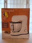 Stand Mixer, Lightweight/Powerful, Tilt-Head, Beautiful 5.3 qt White Beautiful by Drew Barrymore 5.3 qt Stand Mixer, Lightweight & Powerful with Tilt-Head, White Model 19115 The Beautiful 5.3QT Stand Mixer with Tilt-Head by Drew Barrymore brings all the performance of a traditional stand mixer, but in a lightweight design. The Stand Mixer can mix up to 9 dozen cookies with its powerful 300-watt mixing system and has 12 optimal speed settings to fit all your new and old recipe needs. For even more convenience, this stand mixer includes a tilt-head design so you can effortlessly add ingredients while mixing, and a splash guard to prevent splatters. It also has removable, dishwasher-safe accessories for easy clean-up. Created by Drew Barrymore, Beautiful Kitchenware combines elegant design, contemporary colors and modern silhouettes for high-performance cookware that looks beautiful in your kitchen. 5.3QT high polished stainless steel bowl with handle can mix up to 9 dozen cookies Powerful 300-watt mixing system 12 optimal speed settings for all your mixing needs Easy to use tilt-head design to easily add ingredients while mixing All accessories are removable, dishwasher safe & BPA free for safe and easy clean up Splash shield to easily add additional ingredients and to prevent splatter Long-lasting material with Soft Matte Premium Finish Accessories included: Coated metal Flat Beater, Dough Hook, Stainless Steel Wire Balloon Whisk and Splash Shield Beautiful by Drew Barrymore Open Box Disclosure: Item is in almost new condition, comes in original packaging with protective wrapping. Box was opened, item has been handled to test and inspect to ensure good condition and accessories are included. Slight flaws or imperfections may be present. Factory external cardboard box may be partially torn and have return labels or other handling labels on the box. The Pros of Buying Open Box Cost savings – Since open box items cannot be classified as "brand new", they are almost always offered at discounts off the retail price. Environmentally-friendly – Purchasing open-box gives previously returned goods a second life rather than seeing them end up in a landfill. There is something satisfying about extending a product‘s usable lifespan.
