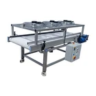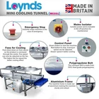 Contact Us Visit Our Store Home About Us Payment Shipping Returns Contact Us View Feedback Add to Favourites Loynds Candy Cooling Conveyor Tunnel - Artisan Candy Manufacturing Machine The Loynds Mini Cooling Tunnel is the perfect accompaniment to our other low volume candy manufacturing machines. Designed and built in the UK, this machine is the ideal solution for a small scale candy factory, giving a good cooling solution in a small footprint. The Cooler sits at the height of a regular work bench, so product can be passed directly from your tabletop machines, or your own hands, onto the conveyor. The machine is manufactured from aluminium extrusion and all contact parts are made from food grade certified materials. There are 3 axial fans located on the top of the candy cooler for even cooling across the mesh belt. The fan speeds can be adjusted which in turn controls the amount of cooling. The mesh belt helps warm air move away from the product being cooled. The belt speed can be adjusted using the inverter controls on the front of the machine. A combination of belt speed and fan speed gives excellent cooling control. Underneath the mesh belt are crumb catchers. These catch and debris candy which can be collected and recycled into subsequent batches. Running along the sides of the candy cooling tunnel are adjustable side guides. Using quick release thumb screws these guides can be moved in our outwards which alters the available width of cooling conveyor. The stand is on Castor wheels which can be locked to prevent the machine moving during operation. Home About Us Payment Shipping Returns Contact Us View Feedback Add to Favourites