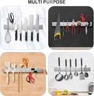 ✔Premium Magnetic Knife Strip: magnetic knife holder is made from strong magnets and covered in high-grade 304 stainless steel, the sleek, modern, space-saving design saves valuable countertop and workbench space, accenting any kitchen decor. ✔Powerful Magnetism: This knife magnetic strip has a fully magnetic surface powered by a strong magnet. It is used to hold your knives and help keep children out of the reach of sharp knives. The knives will stay in place and not slide off. ✔Drilling Easy Installation: The drilling knife magnetic strip comes with mounting hardware ( except for the double-sided tape) and easy-to-follow illustrated instructions to help ensure an easy and quick installation on any surface, NEVER WORRY TO FALLEN OFF. ✔Organize it All: This magnetic strip allows you to hold more knives than most knife blocks on the market while still being small enough to allow you to hold more knives and being versatilely fitting into many nooks and crannies in your kitchen or workspace. ✔Wide Application: The knife wall magnet rack is the ultimate organizer for knives, scissors, tools, keys, etc. magnetic holder can be used as a knife strip, knife rack, kitchen utensil holder, home organizer, art supply organizer, and tool holder.