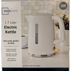 Mainstays 1.7L Electric Kettle, Color White, New Condition, Model MS8400778514-3 🎁The Mainstays 1.7L Plastic Kettle features easy one-touch operation. Convenient cordless design lifts off the base for easy serving. A concealed heating element and safety-locking lid provides extra security. This kettle is made of high-temperature resistant plastic in a bright white coloration. The large water viewing window makes it easy to see how when you need to refill the water in the kettle. Condition: New Model: 8400778514-3 🎁120V/60Hz/1500W 🎁Orange indicator light 🎁Convenient external semi-transparent water gage 🎁Automatic shut off and boil dry protection 🎁Safety locking lid 🎁360 degree rotation 🎁Cordless, detach from base for ease of use 🎁Max capacity 1.7 Liter 🎁Concealed heating element 🎁Color: White 🎁Condition: New 🎁Model MS8400778514-3 Features 🎁Automatic Shut-Off Assembled Product Dimensions (L x W x H) 🎁6.30 x 9.06 x 8.66 Inches