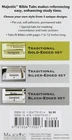 Traditional Silver-Edged Bible Tabs Set Perfect for those who carry their Bible with a sense of style. Silver foil edges are a visually pleasing way to find favorite Scriptures. 72 white foil-edged tabs for Bible from 7 inches up to 12 inches. Set includes: Old and New Testament tabs, special notation tabs and a Life Verse tab. Tabs are printed on both sides, come with a quick & easy placement guide and are placed in a compact 3.25" x 6.25" package that can either hang on a hook or stand on a counter.