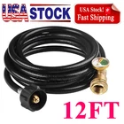eBay 12 Feet Propane Tank Hose Extension with Gauge for Gas Grill, Heater and All Other Propane Appliances, Acme to Male QCC/POL Fittings Description UNIVERSAL- Compatible with all appliances with a QCC1 / type1 connection and up to 40 lb. propane tanks. CONVENIENCE- Come with 12 Feet long hose. You don't have to pull your propane tank out to read the dial on the gauge. More convenient than normal propane tank gauges. SAFETY- Built in leak detector to restrict flow in case of hose or grill malfunction HEAVY DUTY-100% solid brass construction withstands weather, scratching, denting and corroding. HASSLE FREE- Ready to use out of box / Fits all Propane tanks with QCC connection. Will not read levels immediately: begins working when propane is flowing Product Description Propane Tank Extension Hose with Gauget for Gas Grill, Heater and All Other Propane Appliances, Acme to Male QCC/POL Fittings 1.If you own it. You don't have to move your propane tank. You don't have to pull your propane tank out to read the dial on the gauge. More convenient than normal propane tank gauges. 2.Can I use it on a 100 lb. propane tank? Yes,It can be used with 100lb tank, yet you need an adapter with POL connection. Choose the adapter showed below. Color Coded Dial for Easy Viewing Monitors fuel level without removing the tank.No need to bend over or squint at tiny level markings. One glance at the DozyAnt's large dial will tell you whether you're in the red (empty), yellow (low) or green (sufficient). Note : This gauge will not say exactly when the propane tank will be empty, rather it gives an approximation. In hot weather the pressure increases and in cold weather the pressure decreases, therefore the same amount of Propane will show different levels on the gauge's meter Length 5 Feet 12 Feet / Male Connection Type QCC1 (Type 1) & POL QCC1 (Type 1) & POL Used with the hose for 100lb tank Female Connection Type QCC1 (Type 1) QCC1 (Type 1) Used with the hose for 100lb tank