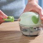 Bullet Points: 1、【Safe for You to Use】Mini Manual Food Processor's unique design prevents your hands from ever going near the built-in blades, making this the safest option for an expert slice. 2、【Food-grade & Stable】Our Pull Chopper is made from food-grade ABS+PP+PS + stainless steel, which means it won't rust and is very durable not brittle steel for greater stability and strength. 3、【Ergonomic & Non-slip】Ergonomic handle for minimal chopping effort. Mini Manual Food Chopper is designed with a non-slip silicone base. The quick and easy way to chop, blend and blend food. 4、【Wide Use】Pull String Chopper perfect for chopping vegetables, fruits, and nuts such as garlic, onion, tomato, potato, and many other veggies for baby foods, salad, salsa, pesto, hummus, guacamole, and so on. 5、【Perfect Gift】What else can make a better gift for your loved ones than this gift of health? Manual Garlic Puller is perfect for moms, professional chefs, cooks, healthy-conscious individuals, and food enthusiasts alike. Descriptions: 1. Food-grade cup body, reinforced blade, magnetic knife post, metal drawstring, and silicone non-slip pad. 2. Perfect for aged garlic, ground ginger, crushed fresh chili, complimentary food, ground meat, etc. 3. It can be broken even if the amount is small, and 1 piece can be broken. Specifications: Name: Piggy Mini Garlic Puller Material: ABS+PP+PS+S/S Size: 9.3x9.3x8.5CM/3.66x3.66x3.35in Capacity: 170ml Color: green Packing list: 1* Manual Garlic Pulled
