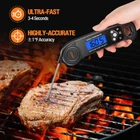 Meat Thermometer Digital, Candy Food Dark Black Product Details Package Dimensions : 6.69 x 3.58 x 0.75 inches; 3.53 ounces Item model number : EK-01 Manufacturer : AMMZO Brand: AMMZO Special Feature: Fast Reading System Color: Dark Black Age Range (Description): Adult Included Components: instand read thermometer Outer Material: Plastic Display Type: Digital Power Source: Battery Powered Model Name: Meat Thermometer Item Length: 5.9 Inches ULTRA-FAST & HIGHLY ACCURATE: With a precision sensor, this Digital meat thermometer reads temperature in 2 to 4 seconds and is accurate within 1 °F . Supporting Celsius and Fahrenheit display from -58°F to 572°F (-50°C to 300°C) makes the food thermometer suitable for BBQ, grill, pan-frying, baking or candy making. WATERPROOF & LARGE BACKLIGHT DISPLAY: The Candy Thermometer is IP67 Waterproof rated. Clean under running water with no concern. No-fog screen. The large 1.65 Inches backlight display gives easy reading in any dark or dim situation. EASY TO USE: The ultra-thin anti-slip grip design makes this digital grill thermometer easy to maneuver. With its retractable probe, large hang loop and built-in strong magnetic at the back, you can conveniently store the cooking thermometer in the kitchen. AUTO-OFF: This 4.5Inches food grade stainless steel probe keeps your hands burn-free in high heat situations. 2 mins auto-off makes the BBQ thermometer a battery saver. With a Hold button, no more lingering near the heat to read the current temperature. WHAT YOU GET: The package includes a kitchen thermometer, Comprehensive food temperature guide, user manual, 2 button batteries, 1 battery opener and lifetime hassle-free customer support. Any question or problem will be addressed timely. No risk purchase!