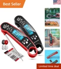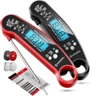 Meat Thermometer Digital, Instant Read Food Thermometers for Kitchen Cooking with Probe, Backlight, Magnet, Waterproof, for Candy, Grill BBQ, Oil Deep Fry, Baking,Turkey & Liquids2 Pack 【Ultra Fast & Accurate Readout】 Equipped with a food grade stainless long probe, thermometer takes the temperature in a little as 2-3 seconds and is accurate to ±1°C(℉) degrees with a wide range of -58℉~572℉(-50°C~300°C). The food thermometer is perfect for indoor/outdoor cooking, grilling, BBQ and more. No matter what you're cooking, this instant read meat thermometer is the best assistant for you. 【Convenient to Use & Multi Function】Works right out the box! The digital thermometer is pre-calibrated, so you don't need to calibrate by yourself. With Auto On/Off function, you can unfold the probe to turn on or fold to turn off. Press the ℃/℉ button to switch the temperature between Centigrade and Fahrenheit. The digital meat thermometer not only comes with a large digital LCD backlight screen, but also has Hold Button which lets you see the temp easier. 【Waterproof Design & Durable Material】 With professional IP67 rated waterproof design, the food thermometer can be washed under running water without fear! Incredible waterproof performance makes it easier to clean. What's more, the meat thermometer has a strong ABS plastic shell. Even if the thermometer is accidentally dropped or hit, it can be easily protected from serious damage. thermometer works with great durability and lasts longer than others. 【Built-in Magnet & Easy Storage】The instant read thermometer has built-in magnet and a hanging hole with bottle opener function. After cooking finished, you can either hook the food thermometer to the wall or attach its magnetic back to the refrigerator or oven within your reach. The meat thermometer is easy to store. Whether refrigerator, oven, kitchen hook or other places, it can be easily stored wherever you want. 【 Hassle-free Support】 Team provides all of our customer's high-quality products and professional after-sales service. If you have any problems, please feel free to reach to us and one-click "contact the seller". We will be here for you 24-7-365. instant read food thermometer makes an essential for your kitchen gadget. Order now and say hello to perfectly cooked steak, turkey or BBQ. Control the Food Temp, You Can Also Be A Pro Chef. Our meat thermometers read quickly and accurately.