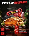 Say goodbye to overcooked or undercooked meals and hello to delicious results with the Meat Thermometer. Upgrade your cooking game and unlock the secret to perfectly cooked meats every time. Experience the joy of culinary success! No More Guesswork During Your Chill Cooking Time - professional digital thermometer devotes every beginner to becoming a prof! A good helper both in outdoor BBQ and Home party, It is the best gift for cooking enthusiasm and the useful kitchen gadget for festival meals Accurate and Sensitive Probe - 2-3s fast response time, measure food temperature from ice water to hot fries (range of -58°F to 572°F, the accuracy of ±1°F), 304 stainless steel probe is safe and food grade that you can feel free to use it on children's and baby food Scientific Instruction and Easy using - We marked professional meat type and temperature reference on item body, keep the food tender and juicy. No more under-cooked food and stomach hurts. One-click operation, easy to switch Celsius and Fahrenheit according to different habits Waterproof and Longlasted Use—waterproof technology can protect the machine during use and clean to extend service life, high quality body and food grade probe ensure durable and safe A Must-have Outdoor BBQ Gadget- Large LCD Display for Instant Reading, Back lit designed can help you read clearly even in the dim outdoor BBQ night or the dense smoking grilling environment. The strong internal magnet and large hanging hole can be attached to the fridge/oven/hook for the handy storage