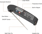Product Description: Specifications: 1. Pivoting probe turns the thermometer off when the probe closed after 10 minutes of inactivity. 2. Super bright built-in LED with backlight makes it easy to read at night. 3. Display can shows temperatures in Fahrenheit and Celsius It adopts stainless steel folding probe and ABS plastic housing. The thermometer is powered by 1 piece AAA battery, which are not included. 4. Press the button "HOLD" to hold on the temperature reading before withdrawing the probe from the food. Type: Digital Food Thermometer Material: ABS + Stainless Steel Accuracy: ±1~ ± 3 Degree Celsius Resolution Radio: 0.1 Response Time: 0.8s Measuring Range: -50-+300 Degree Celsius (-58-+572 Degree Fahrenheit) DPI: 0.1 Degree Celsius (-50.0~300.0 Degree Celsius), 0.1 Degree Fahrenheit (-58.0~572.0 Degree Fahrenheit) Sensor: 100K Measuring Accuracy: +/-0.5 Degree Celsius from the Range of 0~60 Degree Celsius +/-1.0 Degree Celsius from the Range of -40~0 Degree Celsius, 60~200 Degree Celsius +/-1.5 Degree Celsius from the Range of -50 ~ -40 Degree Celsius, 200~250 Degree Celsius +/-2.0 Degree Celsius from the Range of 250~300 Degree Celsius Power Supply: 1 x AAA Battery (Not Included) Features: Foldable, Magnetic, Multi-purpose, Auto Power off Size: 14.5cm x 3.5cm x 1.5cm/5.71" x 1.38" x 0.59" (Approx.) Notes: Due to the light and screen setting difference, the items color may be slightly different from the pictures. Please allow slight dimension difference due to different manual measurement. Package Includes: 1x Digital Food Thermometer