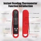 Features: 1. Instant Read Food Thermometer | Our instant read thermometer features a temperature probe and advanced, highly accurate technology with 2-3 seconds response time; Instructions, 2 CR2 button battery, meat temperature chart, 4 hook and loop dots for storage, comes pre-calibrated for your convenience, and recalibrating feature if needed. 2. Multi-Use | From bbq thermometer to baking thermometer, our digital food thermometer for cooking is perfect for meats, liquids, deep frying and candy making. 3. Easy-Read Digital Thermometer For Cooking | Large instant thermometer dial with bright blue backlight means you can always read the temperature, whether you are grilling in the dark or baking in your kitchen. 4. Water-Resistant | Perfect digital cooking thermometer for meat, our digital meat thermometer for food of any kind is water-resistant IP66 rated and can be washed and cleaned under running water.