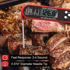 Quicka and Auccrate meat thermometer digital:Our instant read digital thermometer with a precision temperature sensor probe and advanced,Takes a temperature in a little as 2-4 seconds,accurate to +/-1 degrees and display resolution 0.1°C.Supporting Celsius and Fahrenheit display from -58°F to 572°F (-50°C to 300°C)makes the food thermometer suitable for BBQ, grill,pan-frying,baking or candy making. Large Lcd Display And Powerful Functionality: The kitchen thermometer's large 1.7 Inches display gives easy reading.The mirror has a temperature guide to help you perfectly control the temperature.10-minutes auoto-off makes the BBQ thermometer a battery saver. With a Hold button, no more lingering near the heat to read the current temperature. IP67 Waterproof Meat Thermometer For Grilling:This food thermometer made of ABS plastic and stainless meat probe is IP67 Waterproof rated.After use, directly rinse the instant read digital thermometer under running water to make it brand-new again.(Note:Do not completely immerse the meat thermometer in water) Easy To Use And Place :digital thermometer with foldable food safe stainless steel probe and auto-on/off function, open the probe to turn on, fold the probe to turn off.The grill thermometer with large hang loop and built-in strong magnetic at the back, you can conveniently store the cooking thermometer in the kitchen. Multi-Use:From oven thermometer to baking thermometer, our digital food thermometer for cooking is perfect for oven,meats, liquids, deep frying and candy making.At the same time, it is also the best kitchen gadgets and the best gift for cooking lovers